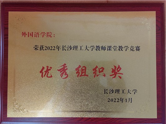 在校级比赛中,付臻老师运用灵活多样的教学方法、准确流畅的语言表达和自信稳定的现场发挥,展现了我院青年教师扎实的教学基本功和充满活力的外语教师的独特风采,获得文理组一等奖的好成绩,荣获“350vip浦京集团官网教学能手”荣誉称号并同其他选手一起代表浦京参加2022年湖南省课堂教学竞赛。同时,我院因出色的教学竞赛组织工作荣获校级“教学竞赛优秀组织奖”。