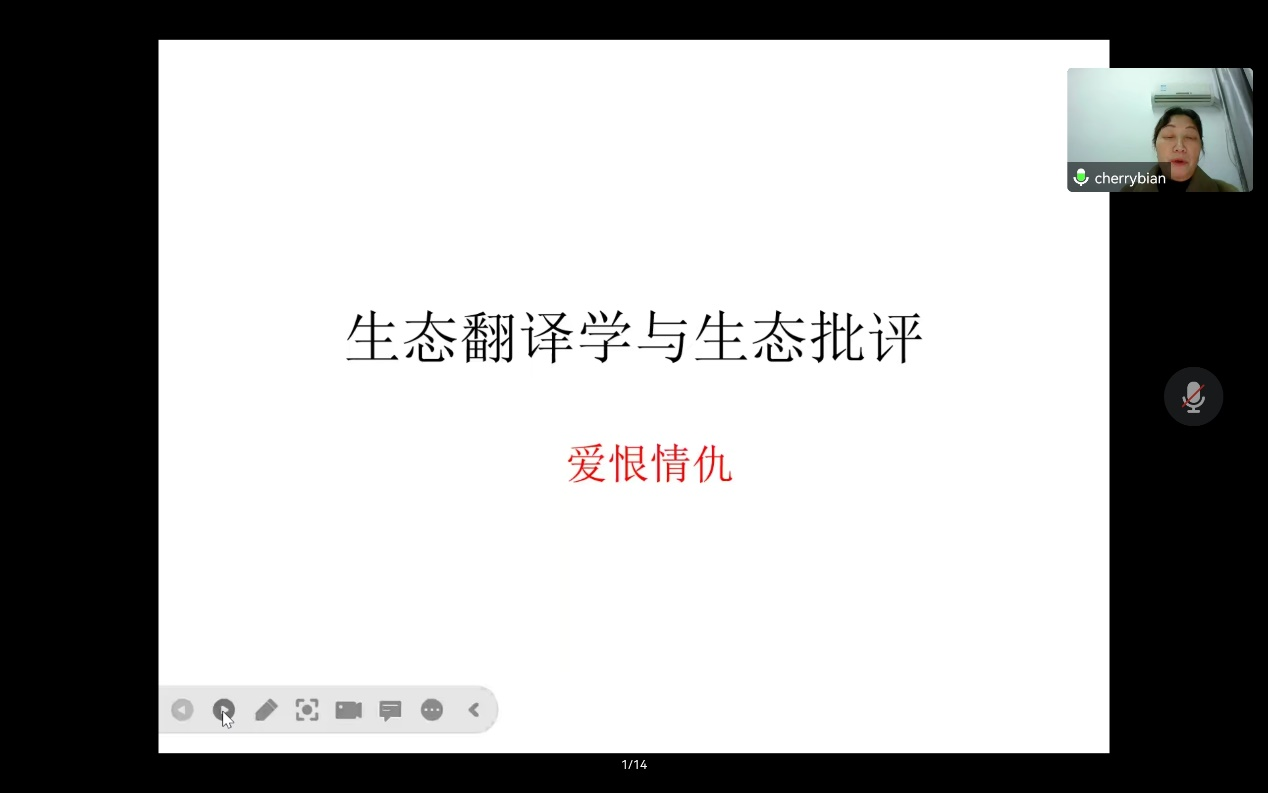 2022年12月14日晚,我院边立红副教授应邀为浦京第十八届博力学术论坛“翻译生态与生态翻译”专题论坛做了题为“谈谈翻译的自然维度”的讲座。外国语学院部分导师及全体研究生参加了本次讲座。
