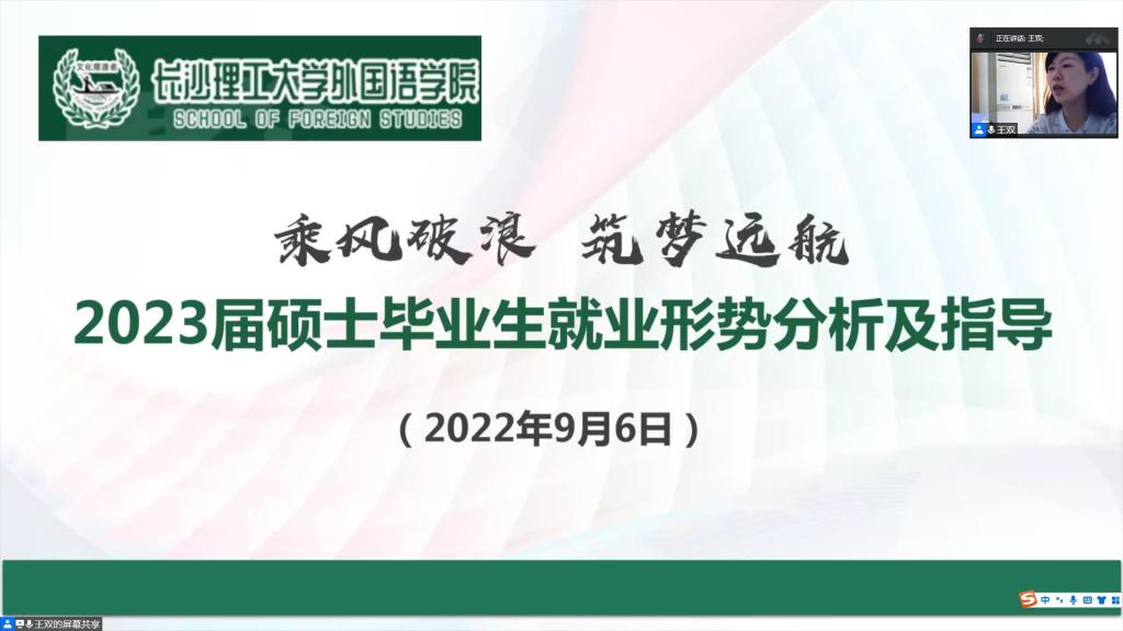 9月6日上午,外国语学院于线上召开2023届硕士毕业生就业动员与指导会议,学院党委副书记王双出席,学院全体2023届硕士毕业生参会,会议由研究生辅导员陈若晨主持。