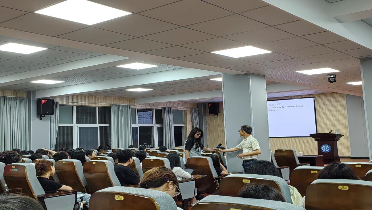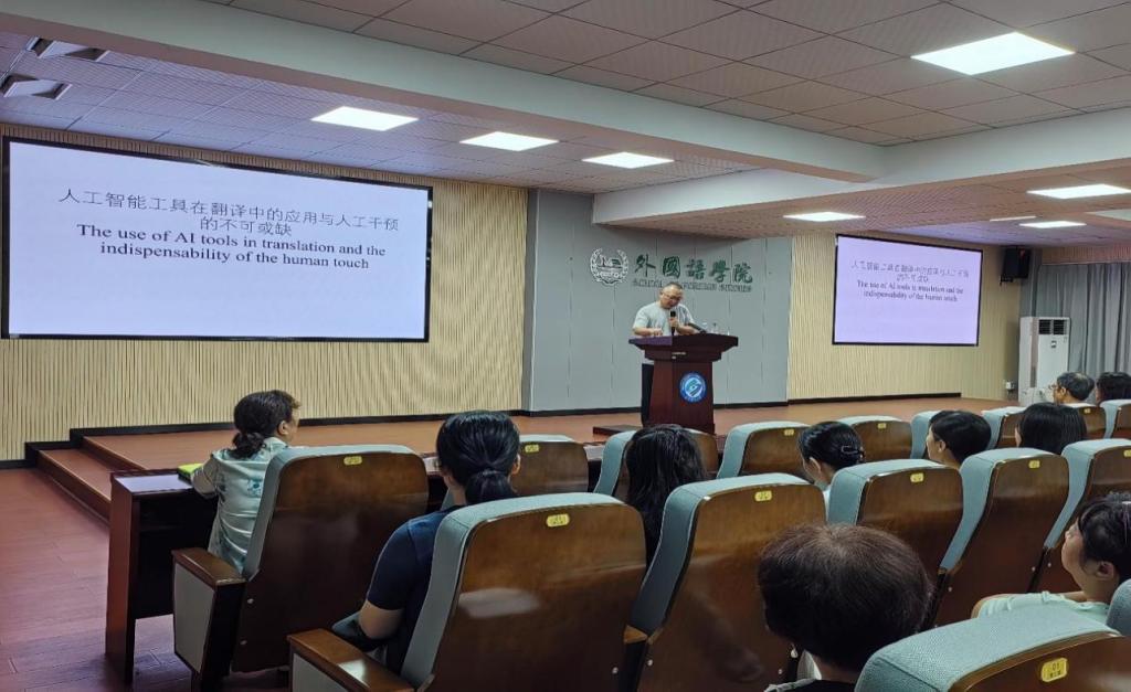 2024年6月18日晚,美国明德大学蒙特雷国际研究院高级翻译学院教授、联合国前高级译审蔡力坚教授应邀于金盆岭校区3教321报告厅为外国语学院师生讲学,主题为“人工智能工具在翻译中的应用与人工干预的不可或缺”。讲座由刘彬副院长主持,共140余名师生参加。