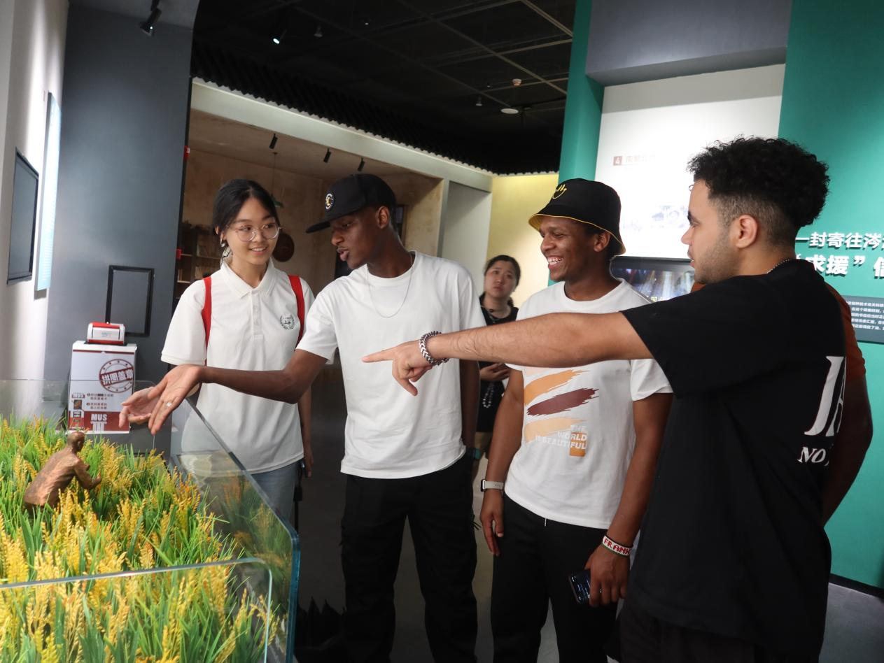 7月7日,350vip浦京集团官网外国语学院研究生暑期专业实践团和来自摩洛哥、苏丹、肯尼亚、尼日利亚等国家的外国友人共同探访隆平水稻博物馆,学习水稻种植的悠久历史,了解“杂交水稻之父”——袁隆平院士的卓越成就。