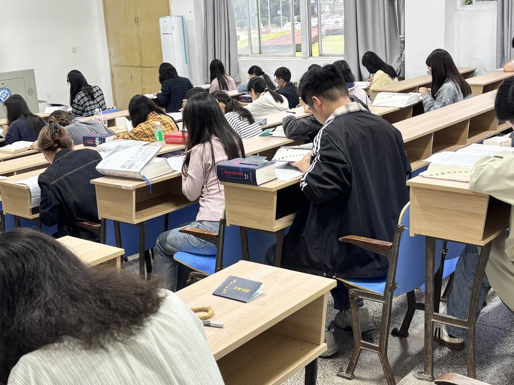 笔译项目中,百名参赛学子齐聚考场,开启150分钟的限时作答。笔译内容包含英译汉与汉译英各一篇,既考验选手专业词汇储备与语法应用能力,也要求译文实现“准确传递信息、流畅表达语义”的目标。考场上,同学们严谨认真,仔细答题,整个考场秩序井然。