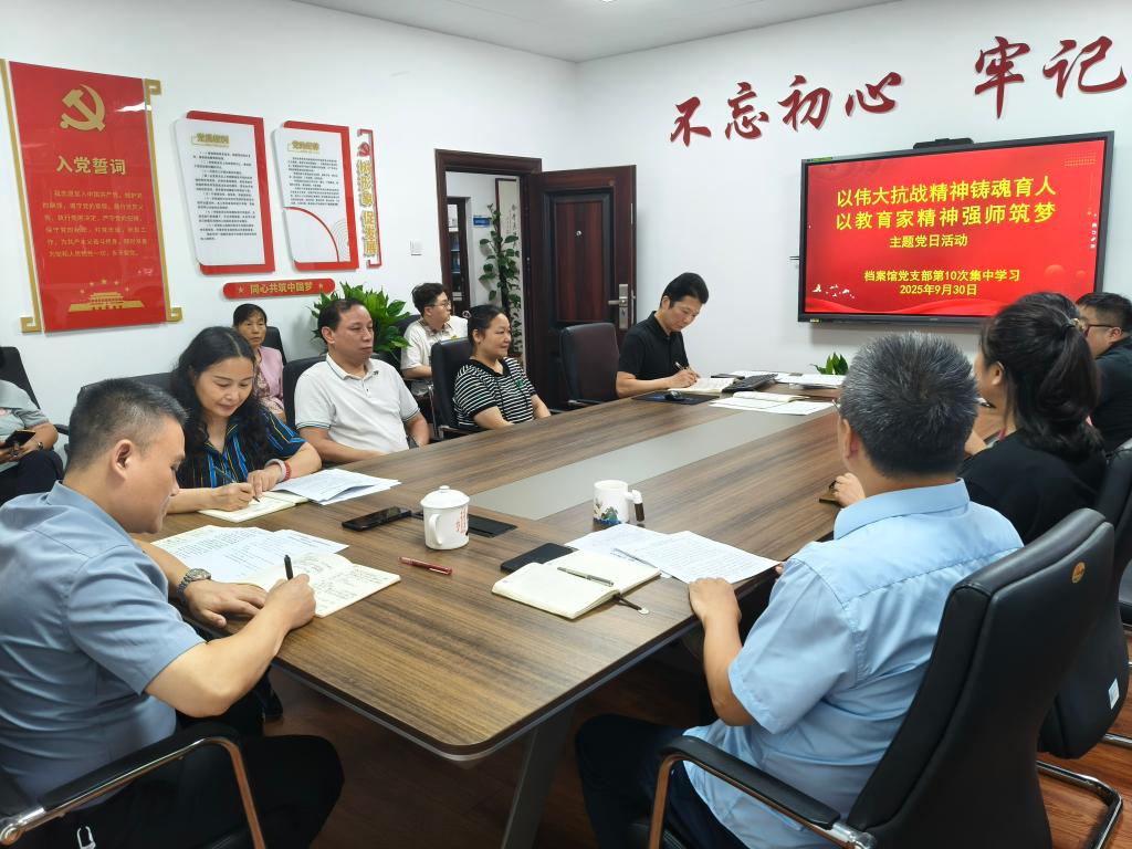档案馆党支部开展“以伟大抗战精神铸魂育人,以教育家精神强师筑梦”主题党日活动(二)——2025年第10次集中学习