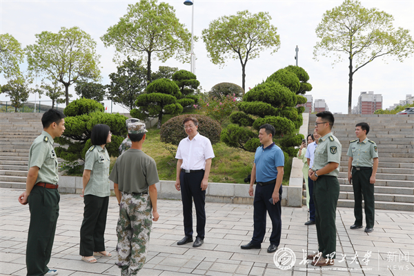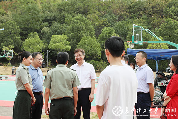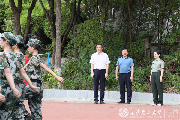 9月7日上午,校党委书记付宏渊率领有关部门负责人,深入2022级新生军训训练场,了解新生军训进展和成效,看望慰问承训教官和参训新生。