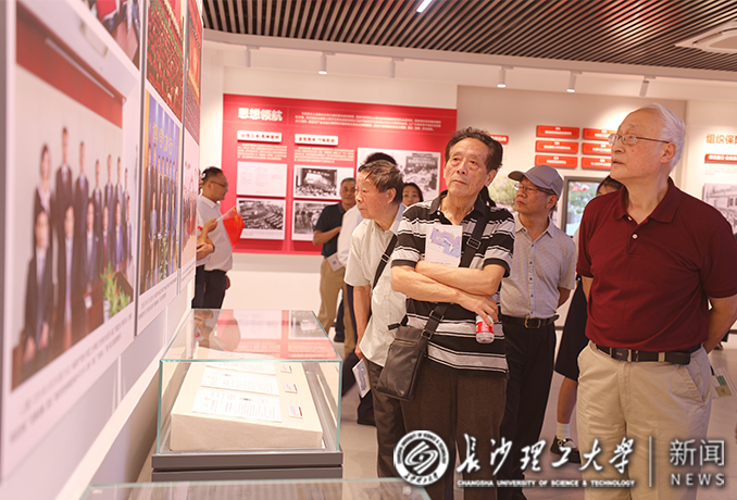 揭幕仪式后,付宏渊、曹一家等校领导,郑健龙院士和师生校友代表饶有兴致地参观了教育基地。离退休老同志、优秀教师和学生代表受邀进行了参观。在讲解员的带领下,大家依次沿着“国之大者”“材之茂者”“师之贤者”和“行之实者”四个篇章路线,全方位了解了浦京与时代同发展、与人民齐奋进,始终牢记“为党育人、为国育才”初心使命所取得的丰硕育人成果。