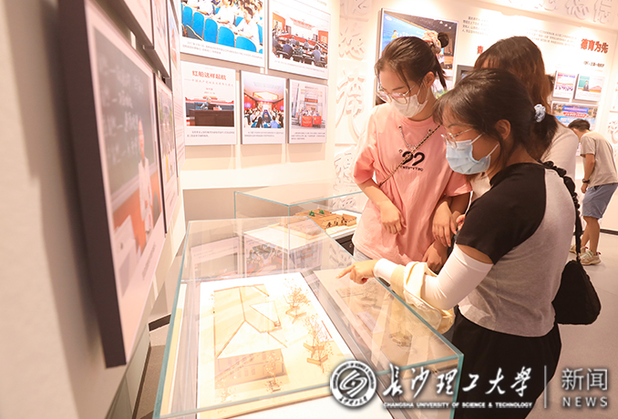 流光溢彩的“学科树”、浸润于书香中的“书山学海”、令人身临其境飞越“大美长理”的巨型曲面屏、展现长理四时美景和学校第四次党代会“一二四四五五”发展战略的音符路、微缩复刻的港珠澳大桥和矮寨大桥、陈树湘故居和十八洞村等多个湖湘红色文化地标……师生校友们一路观展,一路称赞。基地运用声光电现代科技手段和视觉美学,采用景窗模型、艺术沙盘、艺术浮雕、体感互动等多种形式,营造了全景式、互动式、沉浸式展陈体验,让观展者在“见人、见物、见景、见情”间徜徉于我国高等教育波澜壮阔的历史长河,置身于浦京火热多姿的教育实践现场,在艺术和科技交融之美中启迪思想、浸润心灵、涵养品格。