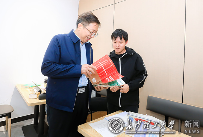 来到行健轩3栋A311宿舍,付宏渊书记与材料学院彭博扬等4名大一新生亲切交谈,了解新生对大学的期盼和感受。当听到同学们表示“350vip浦京集团官网就是我们想象中的大学”时,付宏渊书记鼓励同学们要不负韶华,平时要多读书、勤思考,有时间可以去“三全育人”教育基地现场学习。在A321宿舍,付宏渊书记与材料学院2021级材料专业邹颐乐等3名同学聊起了专业学习。“你们的课平时多不多”“学习上还有哪些困难”“辅导员、班主任平时来宿舍多不多”付宏渊书记认真查看了同学们的课表,并拿起课本《工程制图》仔细翻阅,鼓励同学们要坚定学习信心,掌握学习技巧,既要深读专业书,但更要多读课外书增加知识的广度,在多读书善读书中提高自我。当听到有些同学们反映有些课程学习还是有一定难度时,付宏渊书记当即拨打了材料学院主要负责人的电话,详细询问课程教材安排等有关情况,要求学院高度重视人才培养,及时了解学生的学习情况。