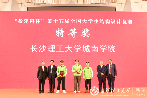 在比赛现场,浦京学子的精妙设计、扎实学识、高超动手实践能力和完美加载获得专家评委和参赛高校的高度评价和一致赞誉。浦京城南学院雷缮诚、乐宇航、潘鑫烨三位同学充分发挥竹质材料受拉性能良好等特点,采用矩形空心杆件等设计制作完成模型《再鸣》,以自重101.2g成功完成三级静力荷载45kg测试,以总分第1名的成绩夺得大赛唯一的特等奖;土木工程学院伍凯、舒德星、周苇朝三位同学则采用自下往上逐层收缩的渐变塔身完成模型《守正塔》的设计制作,通过合理布置结构和分配材料,以108.9g的自重满载负荷,以总分第2名的成绩荣获大赛一等奖。经全国大学生结构设计竞赛专家委员会评审,浦京被授予第十五届全国大学生结构设计竞赛“优秀组织奖”,城南学院荣获“最佳制作奖”。
