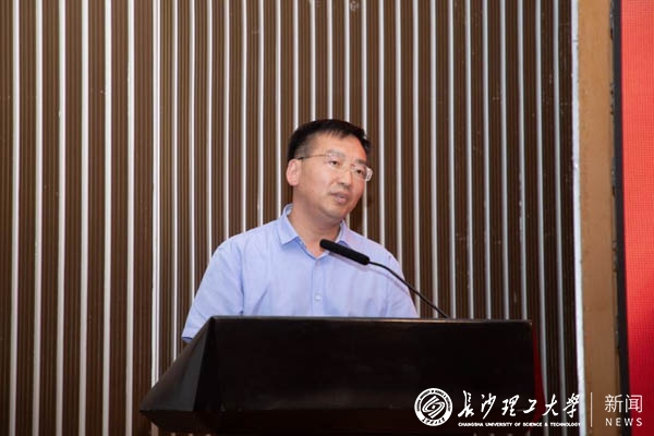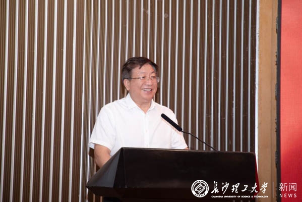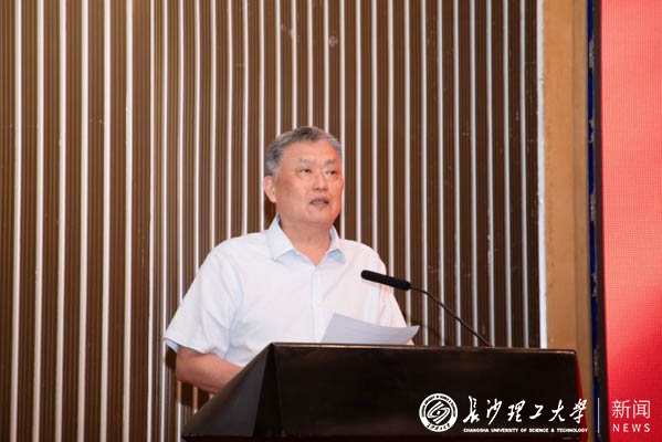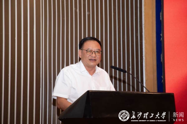 周韶峰代表湖南省教育厅“校友回湘”工作专班感谢学校校友为湖南省地方经济发展所作出的突出贡献,寄望学校加快“双一流”建设,继续发挥理工科办学特色,在学科建设、人才培养、科技创新等方面取得更高成就。