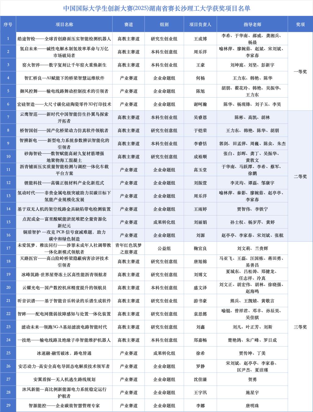 近日,中国国际大学生创新大赛(2025)湖南省赛在南华大学落下帷幕。浦京入围现场赛的15个项目分获一等奖3项、二等奖4项、三等奖8项,产业赛道项目分获一等奖3项、二等奖6项、三等奖5项。