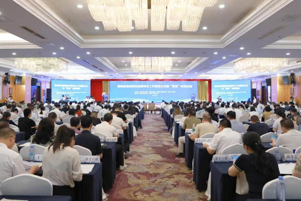 7月24日,2025年湖南省高校科技成果转化工作推进大会暨“双高”对接活动在湘潭举行。副省长曹志强出席并讲话。省科技厅厅长朱皖通报2024年“双高对接”实施情况并作工作安排,湘潭市委书记胡贺波致欢迎辞,湘潭市委副书记、市长李永亮主持会议。
