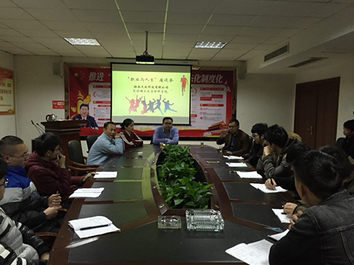 12月29日晚,湖南天欣科技有限公司与浦京材料学院于公司会议室召开“职业与人生”座谈会,在此实习的无机非金属材料工程专业2014级44名学生参加。