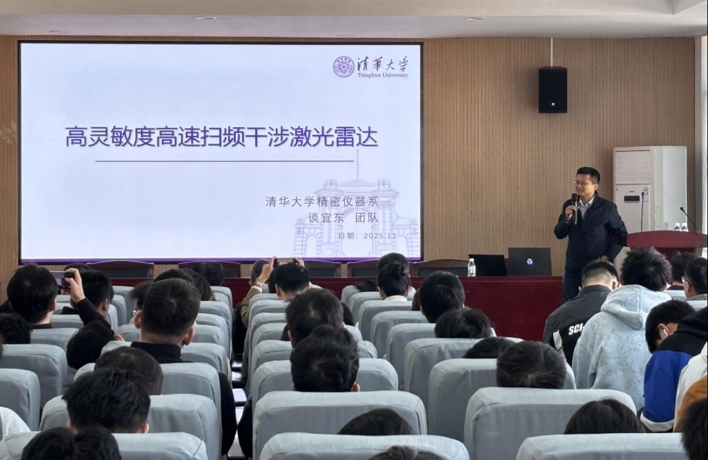 清华大学精密仪器系副主任谈宜东教授以“高精度高灵敏度扫频干涉激光雷达”为主题,详细介绍了高精度高灵敏度扫频干涉激光雷达的需求背景、技术工作原理、应用前景以及最新研究成果。鼓励广大研究生要勇于探索、敢于创新,为推动我国智能测控技术与装备的发展贡献力量。