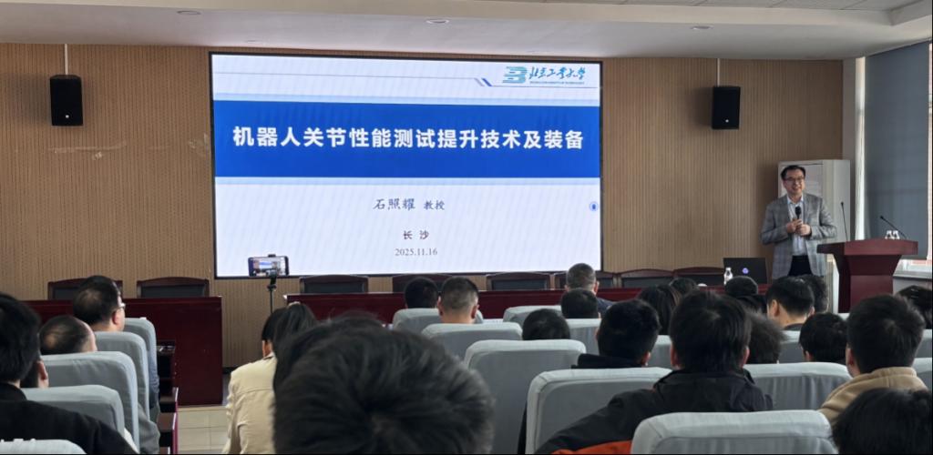 随后,多位国家高层次人才计划入选者先后作特邀报告。北京工业大学教授石照耀以“机器人关节性能测试提升技术及装备”为主题,系统梳理了2013至2025年间机器人关节的技术演进脉络。他围绕“广义传动误差”创新概念、减速器滞回理论、关节多元参数成套测试技术三大核心发明点,精准回应了“如何真实反映减速器往复运动滞回特性”“静动态测试适用边界”等行业关键问题,为机器人核心部件测试技术突破提供了重要解决方案。