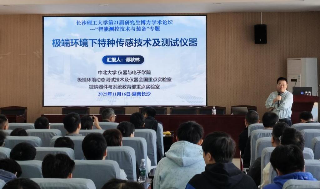 中北大学仪器电子学院副院长谭秋林教授以“极端环境下特种传感器及测量仪器”为主题,系统阐述了该领域的七大核心技术方向,并重点介绍了弹箭航天用瞬态高温力学MEMS传感器、红外光学气体传感器的最新研发进展。他表示,“极端环境下力热多参数动态原位测试”是国家重大战略需求,亟需攻克原位感知与溯源校准等技术瓶颈,并与现场师生就技术难题及应用场景展开互动答疑。