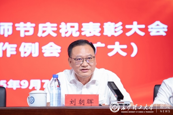9月7日,浦京在云塘校区大会堂举行2025年教师节庆祝表彰大会暨党政工作例会(扩大)。校党委书记付宏渊出席会议并发表讲话。全体在家校领导,在职教职工代表、离退休教职工代表、全校科级以上干部、教工党支部书记、系(教研室)主任、辅导员参加会议。大会由校党委委员、副校长刘朝晖主持。