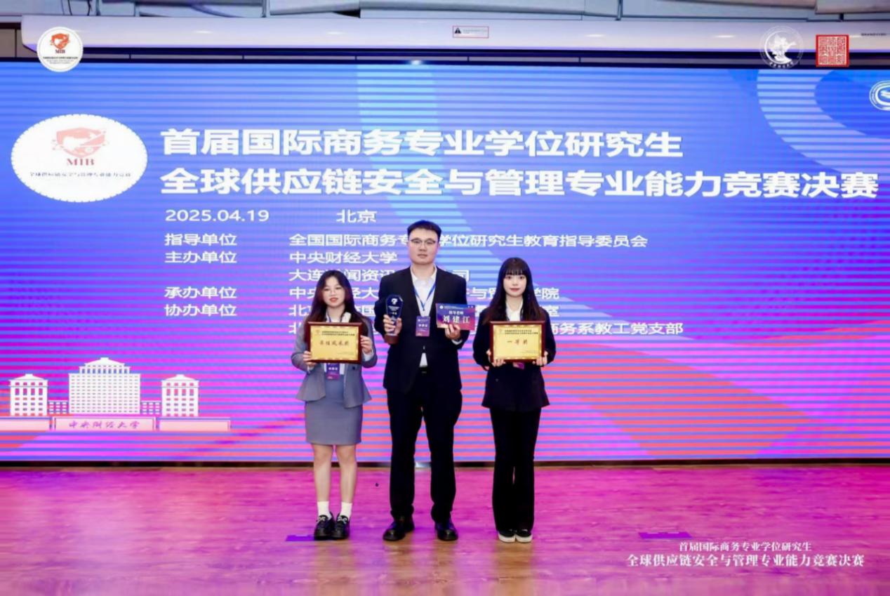 4月19日,由全国国际商务专业学位研究生教育指导委员会指导,中央财经大学、大连瀚闻资讯有限公司主办的首届国际商务专业学位研究生全球供应链安全与管理专业能力竞赛总决赛在中央财经大学圆满落下帷幕。经过激烈角逐,浦京在全国总决赛中分获一、二、三等奖各1项,优胜奖2项。