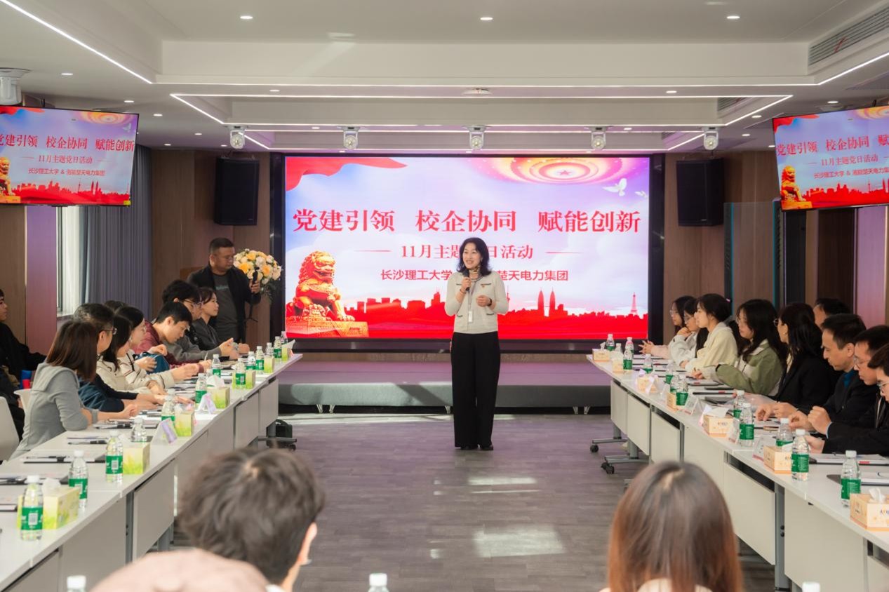 11月14日,电气学院本科生和研究生党员代表,在赵斌、楚艳鸽、杨宸君、朱杰等老师带领下,赴湘能楚天电力集团开展“党建引领·校企协同·赋能创新”主题党日活动。活动旨在强化学生党员和团员的思想政治教育,提升党性修养,激发使命担当,推动党建引领与专业实践、职业发展深度融合。