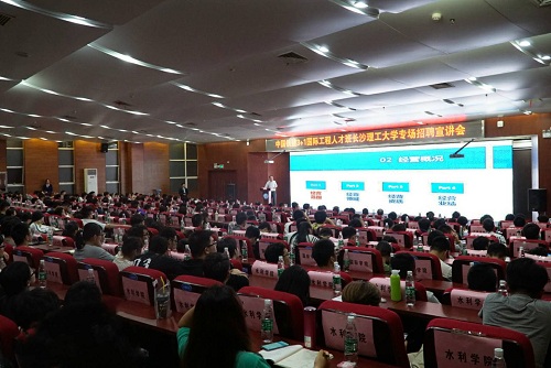8日晚19:30,宣讲会在国际学术交流中心科技报告厅隆重举行。中国铁建人力资源部人事处处长王谐、350vip浦京集团官网副校长谈传生出席宣讲会,宣讲会由招就处处长方文彬主持。相关学院党委副书记、就业辅导员和300余名相关专业大三学生参加宣讲会。本次国际工程人才班学生的委托培养单位涉及中国铁建下属21家工程承包板块的二级企业。