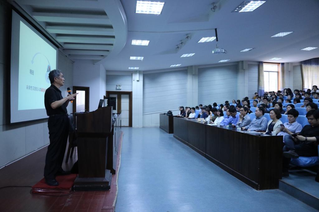 随后孟建民院士为到场的师生带来了一场学术盛宴。他分别从什么是未来,未来性,未来性建筑,科技进步对建筑发展的影响等方面进行了讲述。他以动态画面的形式为现场观众展示了典型动态建筑案例和自己在动态建筑实践方面的探索,包括其设计的曾经入围上海世博会中国馆的斗笠造型动态建筑、冰晶岛、未来“超级城市”畅想等系列作品。