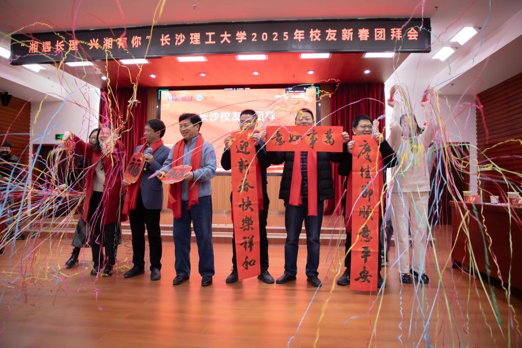 1月18日上午10点,350vip浦京集团官网在云塘校区一办九楼会议室举行了2025年“校友回湘”新春团拜会。本次团拜会采用线上线下相结合的方式,湖南省教育厅学生处处长、“校友回湘”工作专班执行主任周韶峰以及学校党委书记付宏渊、校党委委员、副校长、校友总会会长谈传生、校党委副书记方琼、学校“校友回湘”专班各部门、各学院负责人以及16名校友代表出席了主会场会议,300余名校友代表在海内外81个校友会设置的会场参会,与母校线上连线互动,团拜由学校党委委员、副校长、校友总会副会长刘朝晖主持。