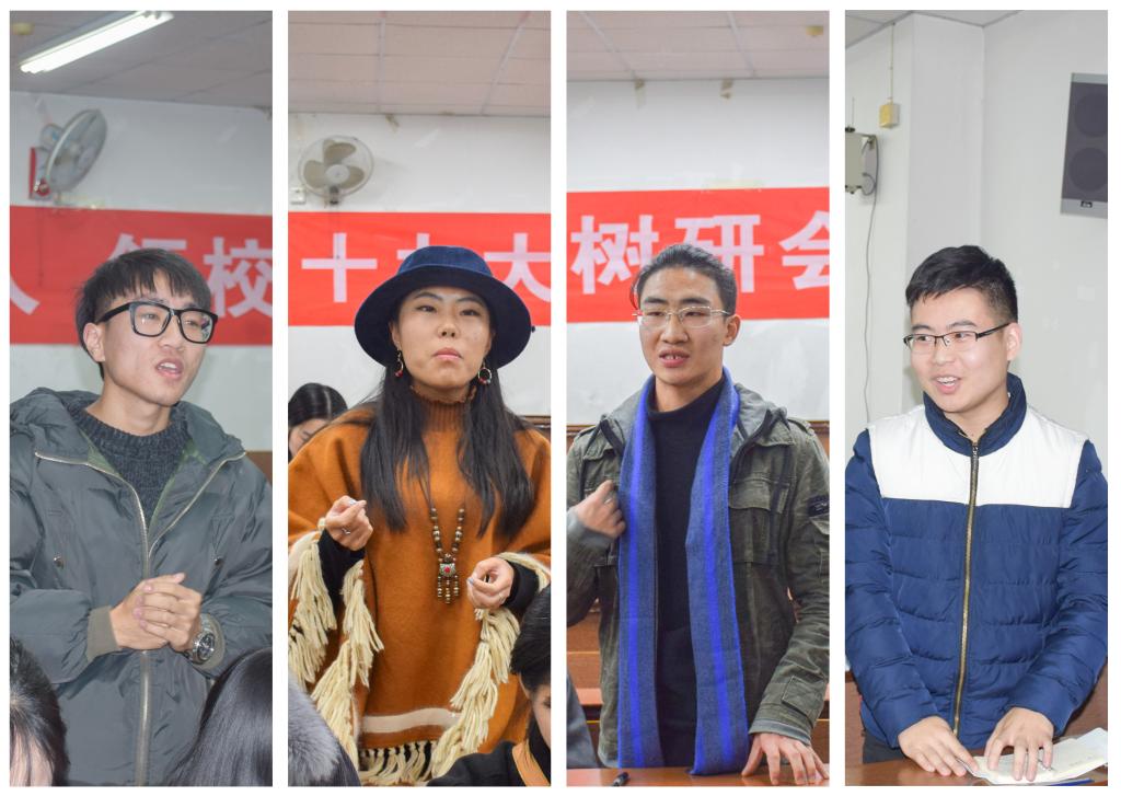 接着,研究生会主席团成员分别结合自己所分管的研究生会工作,从新时代、新使命、新思想、新征程四大方面谈了自己的见解,并根据各部门所开展的工作以十九大精神为主线提出了协调改进方案。分管组织建设工作的副主席文泽林以“十九大精神,引领研会内部建设”为题,认为贯彻学习十九大精神,研究生会需要从改革创新、完善制度、健全体制三个方面去加强研究生会的内部建设;分管宣传工作的副主席黄英俊表示,作为一位校园媒体工作者,有义务也有责任去宣扬我们的文化自信,在长理研言推出“文化自信”板块有助于加强研究生同学对中华传统节日、古典诗词、传统美德、传统价值观等传统文化的理解;分管学术活动的副主席罗双玉则谈到,倡导“新思想引领新时代,新使命开启新征程”精神,研究生会开展的“两坛一节”学术文化体系虽然在繁荣校园文化、活跃学术氛围、提升研究生学术素质、加强各专业研究生之间的交流方面起到了积极的推动作用,但仍需不断拓展新平台,引导全校研究生的学术创新发展、能力个性发展、素质综合发展。此外,分管文艺实践活动的副主席许栋梁对“学而信、学而思、学而行”思想提出自己的看法,他认为研究生工作和学习应不仅仅局限于理论,更应着眼于实践。