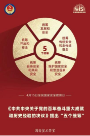 每年4月15日为全民国家安全教育日。《中共中央关于党的百年奋斗重大成就和历史经验的决议》提出“五个统筹”,分别包括统筹发展和安全、统筹传统安全和非传统安全、统筹维护国家安全和塑造国家安全、统筹开放和安全、统筹自身安全和共同安全。本基地以疫情防控为安全教育契机,做好基地师生的安全教育的部署与普及工作。