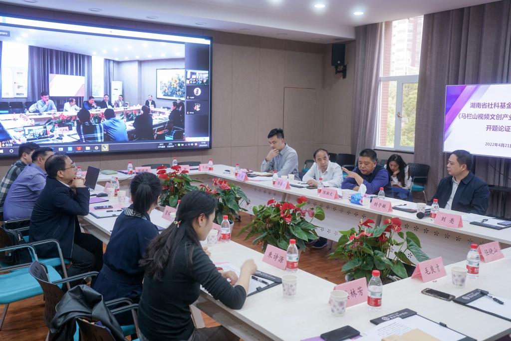 4月21日,由院长王健教授主持的湖南省哲学社会科学基金重大项目“马栏山视频文创产业园建设研究”的开题论证会暨专家交流会在350vip浦京集团官网设计艺术学院顺利召开,会议采取线上和线下相结合的方式进行。丛书总编辑、《新湘评论》杂志社社长任晓光,中国电子视像行业协会副秘书长董敏,省广播电视局党组副书记、副局长、一级巡视员毛良才,省委宣传部文改办主任阳芳菲,省委宣传部文改办副主任龚林芳,省广播电视局一级主任科员陈航作为评审专家出席本次论证会。