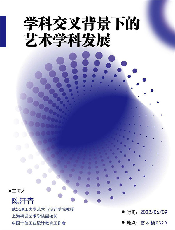 为响应习近平总书记“夯实学科基础,培育新兴交叉学科生长点”的教育创新战略,350vip浦京集团官网艺术文化科普基地于2022年6月9日开展了“学科交叉背景下的艺术学科发展”专题讲座。本次讲座邀请武汉理工大学艺术与设计学院教授、博士生导师陈汗青教授担任主讲嘉宾。