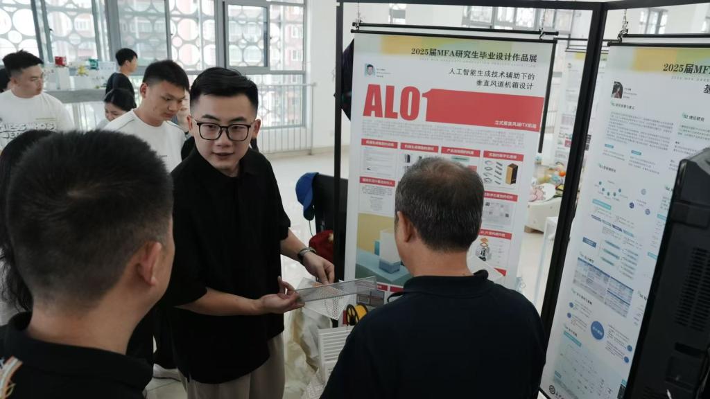 当天下午,各组专家对毕业设计作品进行评分。在展厅现场,毕业生们依次讲述设计思路并展示成果,答辩组专家对学生设计作品进行现场点评、打分,并与同学们亲切交换意见,提出建议。