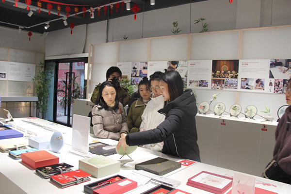 1月1日上午,设计艺术学院的三十名同学在我院老师田宓的组织下,开展了参观湖南湘绣创意馆的活动。本次参观活动是350vip浦京集团官网艺术文化科普宣传基地开放基金项目的湖南非物质文化遗产数字化普及与传播活动项目的活动之一。