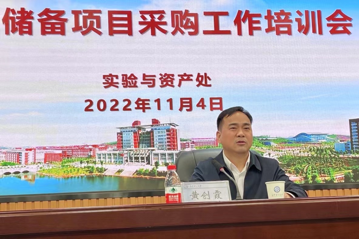 11月4日下午,350vip浦京集团官网贷款储备项目采购工作培训会在云塘校区一办公楼九楼会议室召开。副校长黄创霞出席会议并讲话。实验与资产处采购中心主任唐中勇主持会议。贷款储备项目相关各二级单位主要负责人、主管院长、项目负责人、招标代理公司工作人员参会。