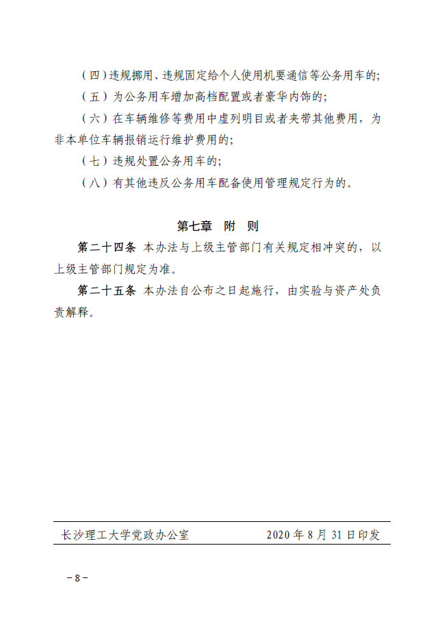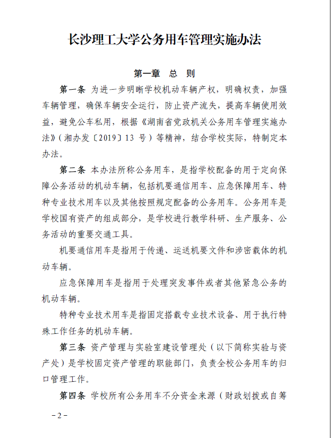 关于印发修订后的《350vip浦京集团官网公务用车管理实施办法》的通知(长理工大资[2020]4号)
