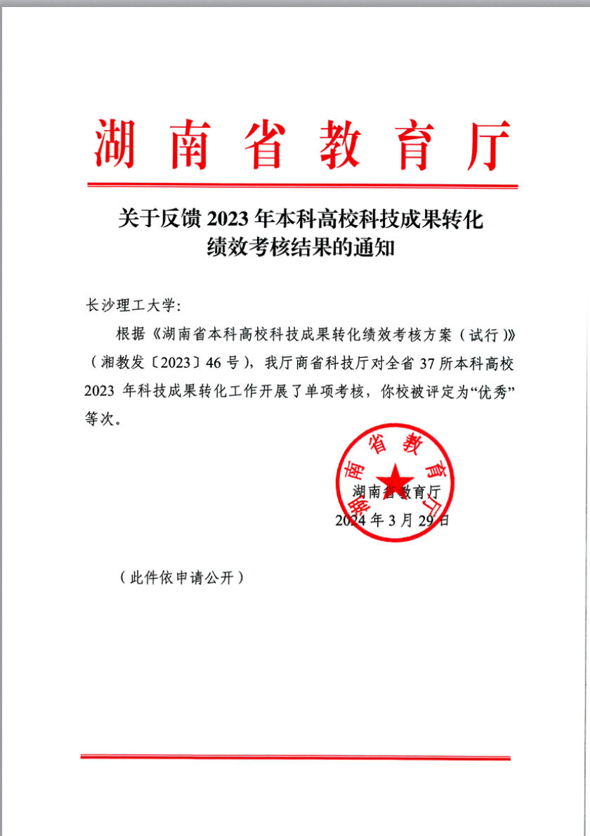 喜报--浦京在2023年高校科技成果转化绩效考核… 3月29日,湖南省教育厅下发《关于反馈2023年本科高校科技成果转化绩效考核结果的通知》,浦京被评定为“优秀”等次。为深入贯彻落实习…